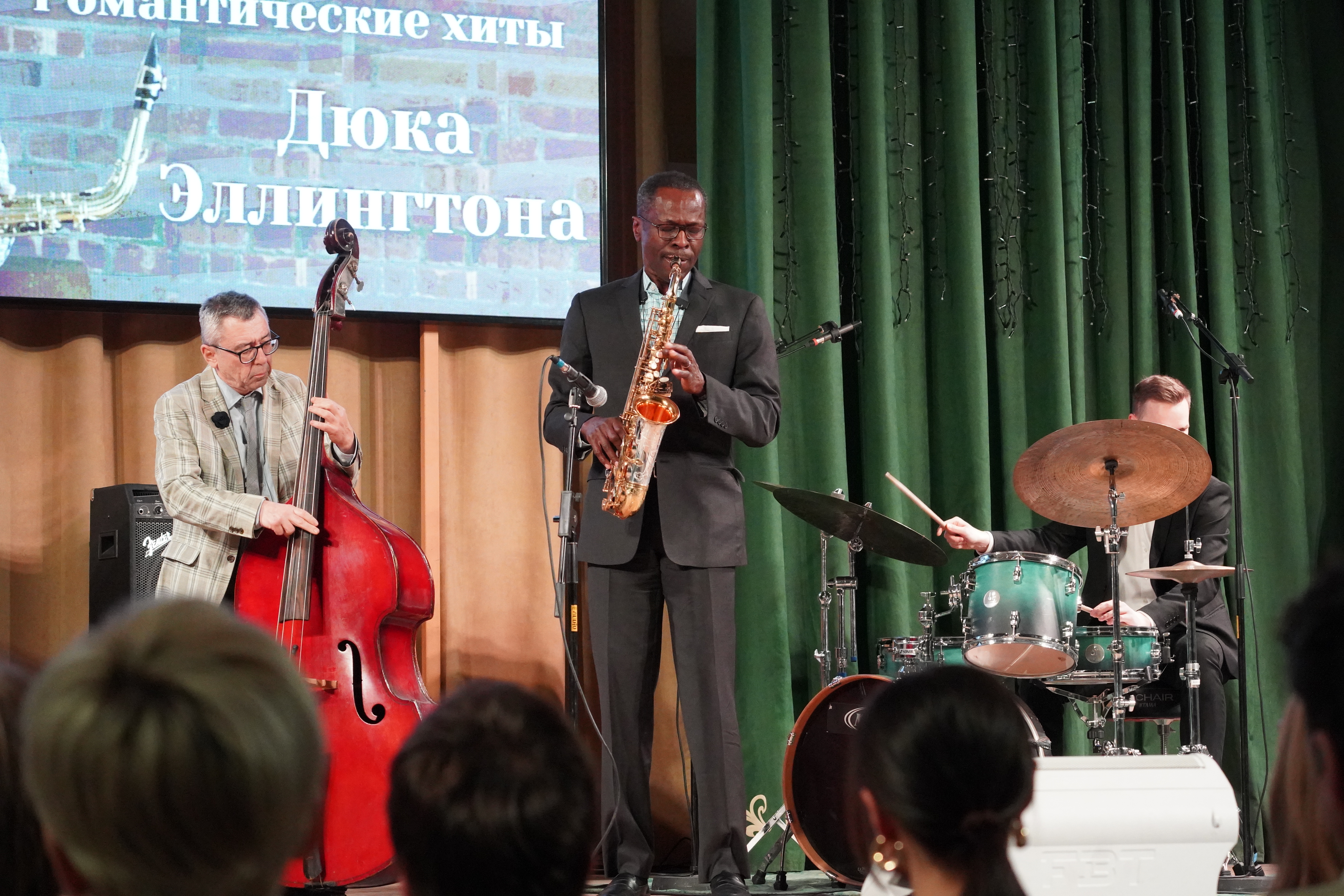 В Смоленской филармонии выступил один из лучших джазовых саксофонистов мира, живая легенда оркестра Дюка Эллингтона, альт-саксофонист из Нью-Йорка Марк Гросс со своим квартетом: Арк Овруцкий (контрабас), Карим Блал (рояль) и Андрей Исаков (барабаны).