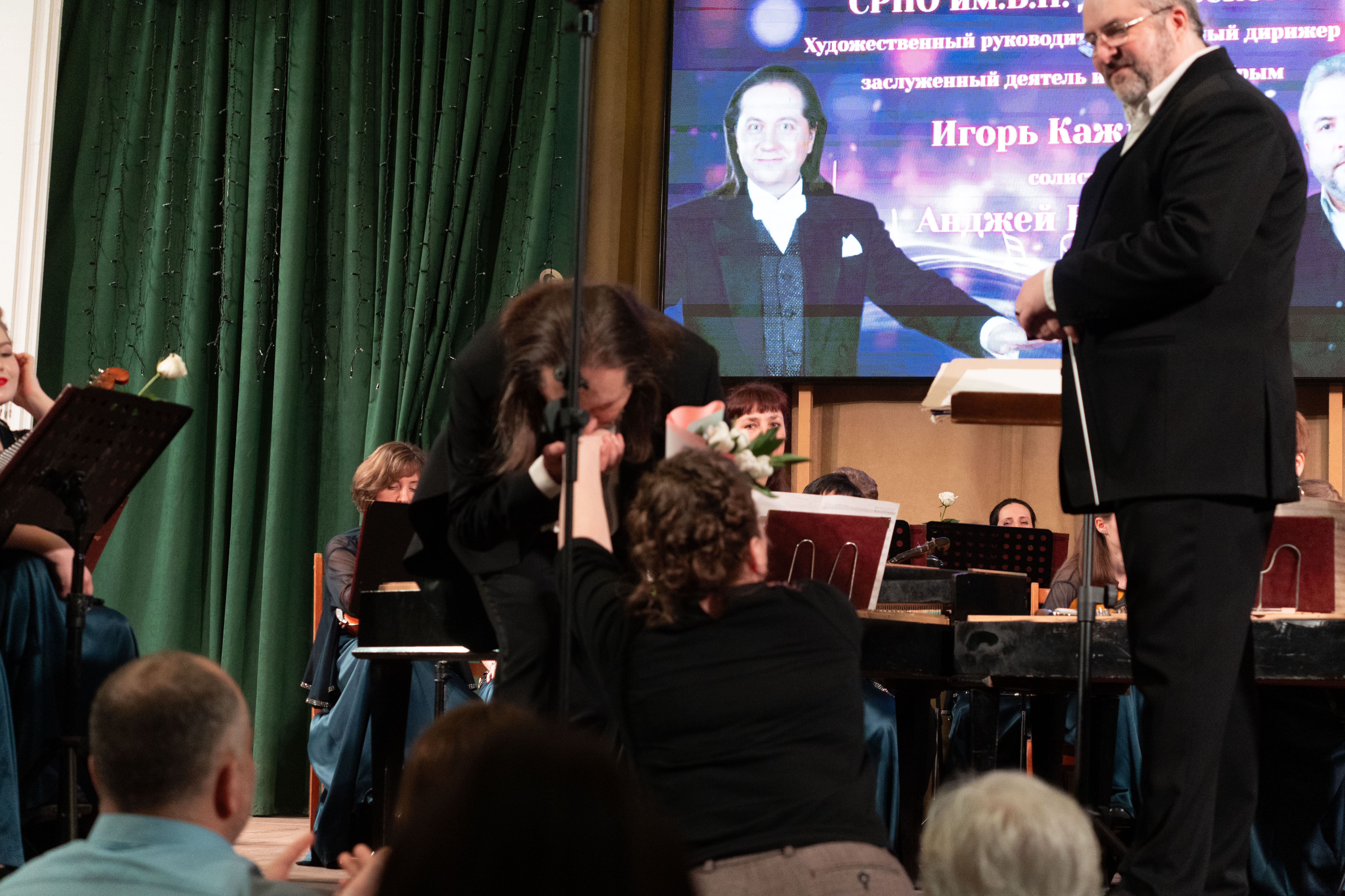 В этот вечер в нашем концертном зале звучали ария графа ди Луна из оперы "Трубадур", ария Жермона из оперы "Травиата", ария Роберта из оперы "Иоланта", ариозо Мизгиря из оперы "Снегурочка", тост князя Орловского из оперетты "Летучая мышь", ария Раджами из оперетты "Баядера", "Carmina Burana" и многие другие.