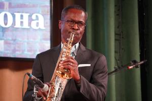 В Смоленской филармонии выступил один из лучших джазовых саксофонистов мира, живая легенда оркестра Дюка Эллингтона, альт-саксофонист из Нью-Йорка Марк Гросс со своим квартетом: Арк Овруцкий (контрабас), Карим Бл