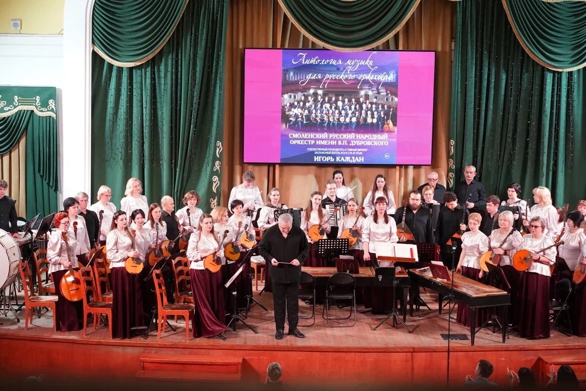 Смоленский русский народный оркестр им. В.П. Дубровского под управлением художественного руководителя и главного дирижера заслуженного деятеля искусств АР Крым Игоря Каждана исполнил произведения Василия Андреева, Веры Городовской, Александра Цыганкова.