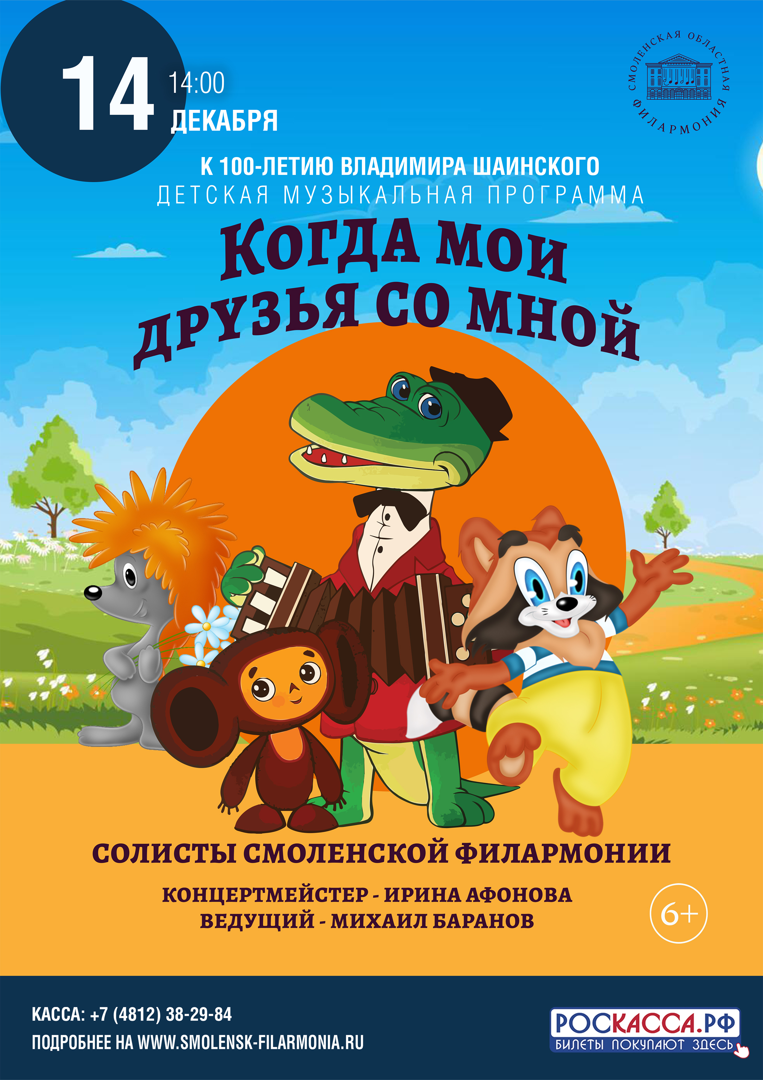 Детская музыкальная программа «Когда мои друзья со мной», посвящённая 100-летию со дня рождения Владимира Шаинского!