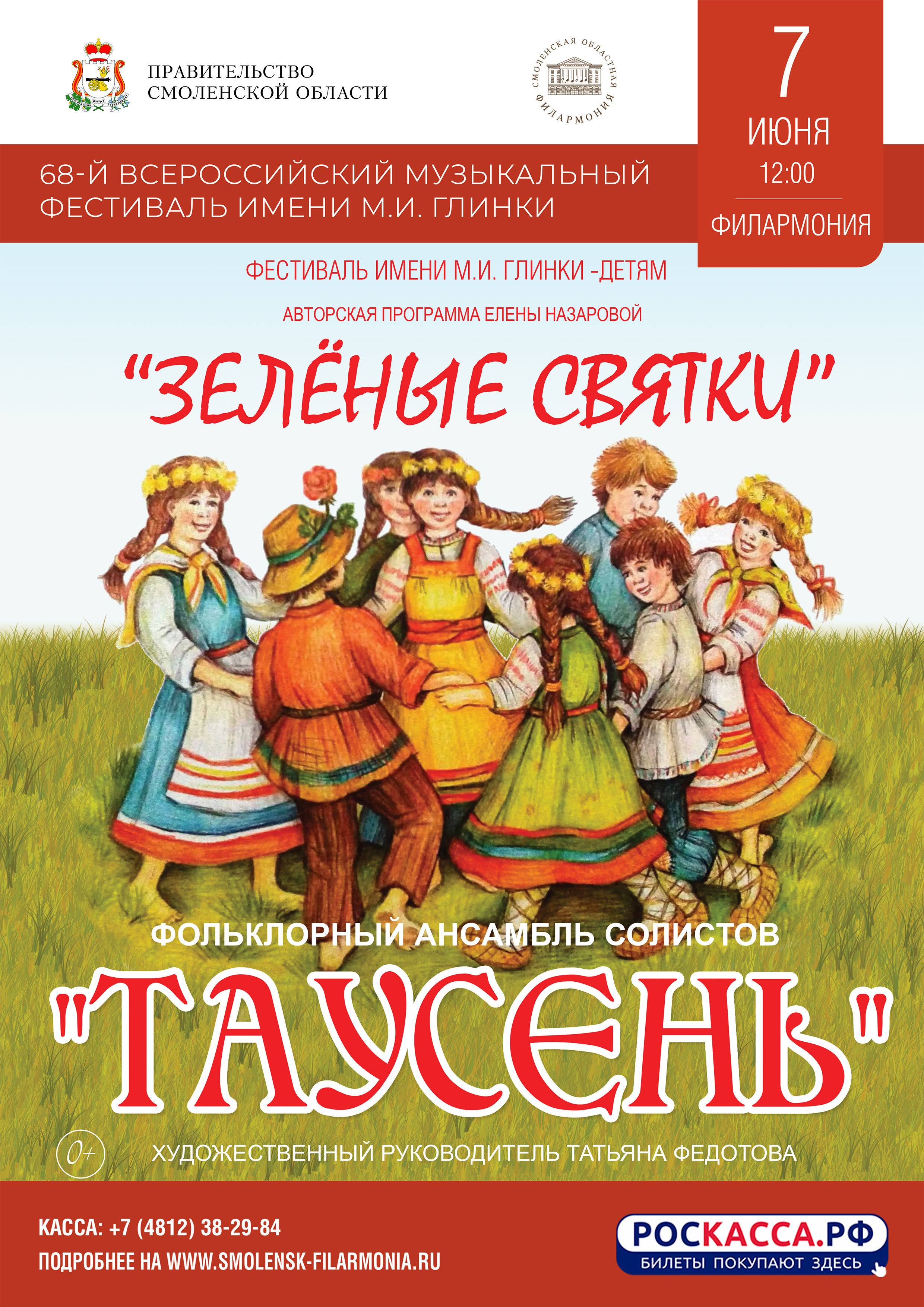 7 июня в рамках 68-го Всероссийского музыкального фестиваля имени М.И. Глинки в Смоленской областной филармонии состоится авторская программа Елены Назаровой для детей «Зелёные святки».