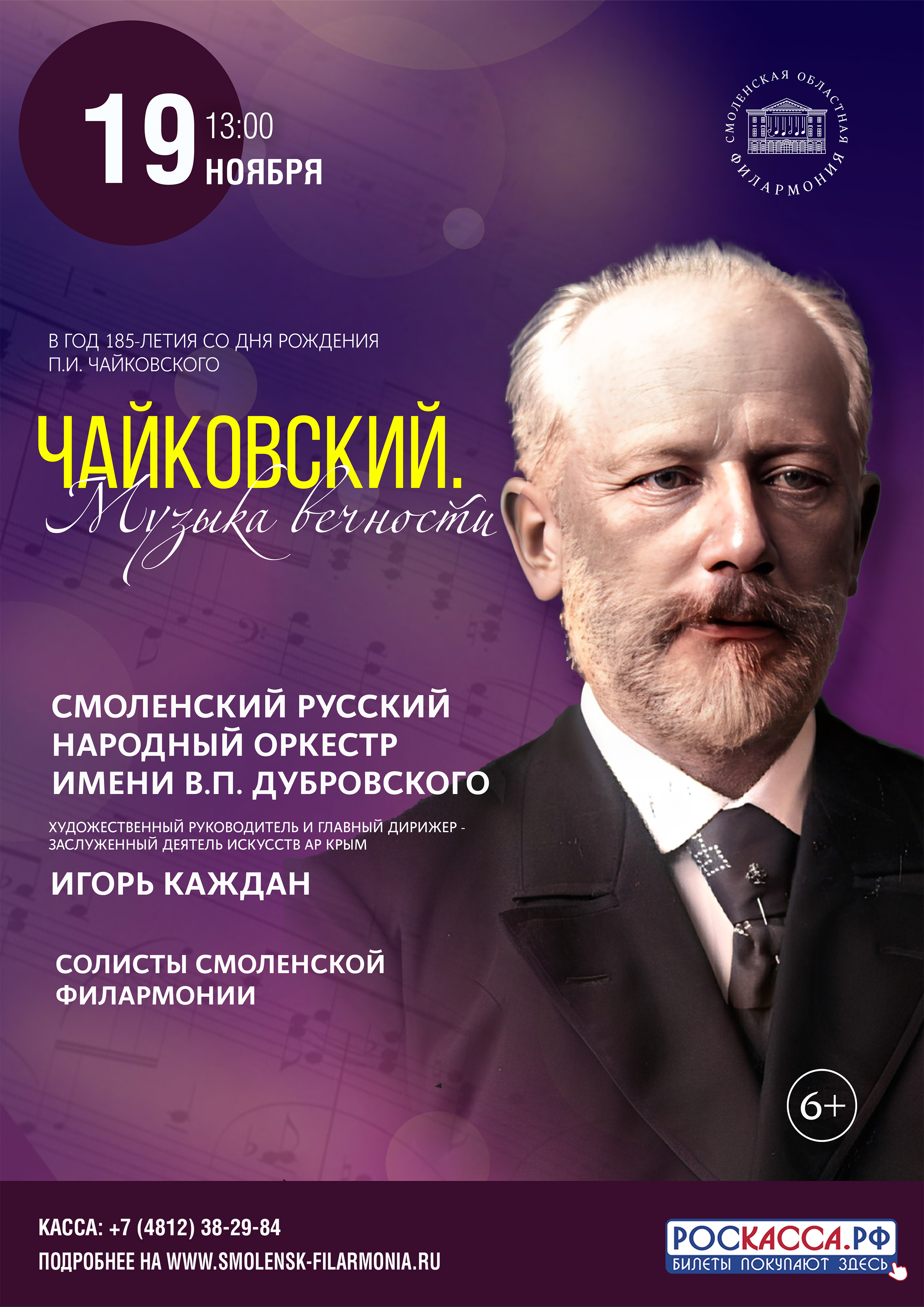 19 ноября состоится концерт «Чайковский. Музыка вечности», посвящённый 185-летию со дня рождения великого русского композитора.