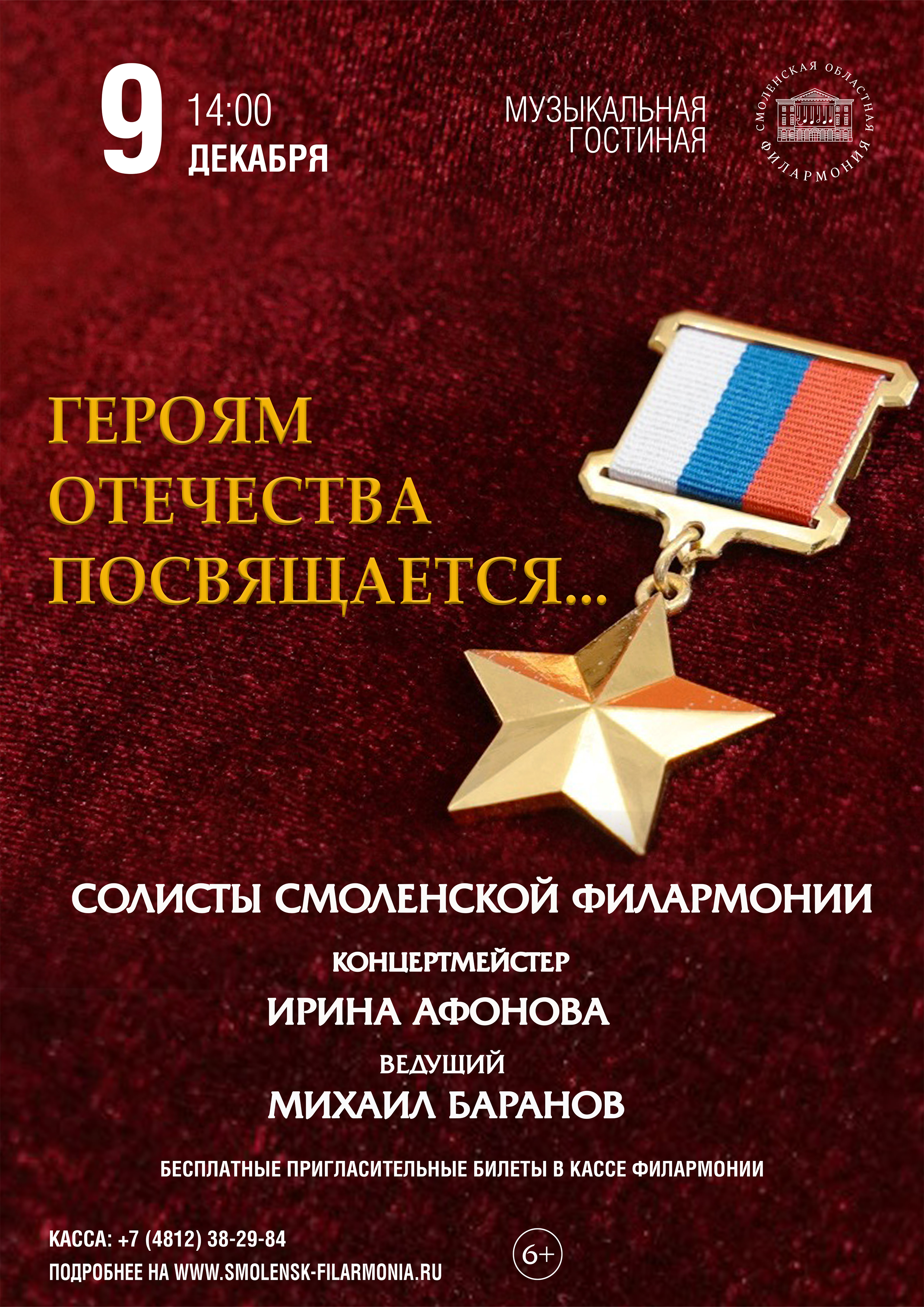 9 декабря в 14.00 в Смоленской областной филармонии состоится концерт ко Дню Героев Отечества «Героям Отечества посвящается…».