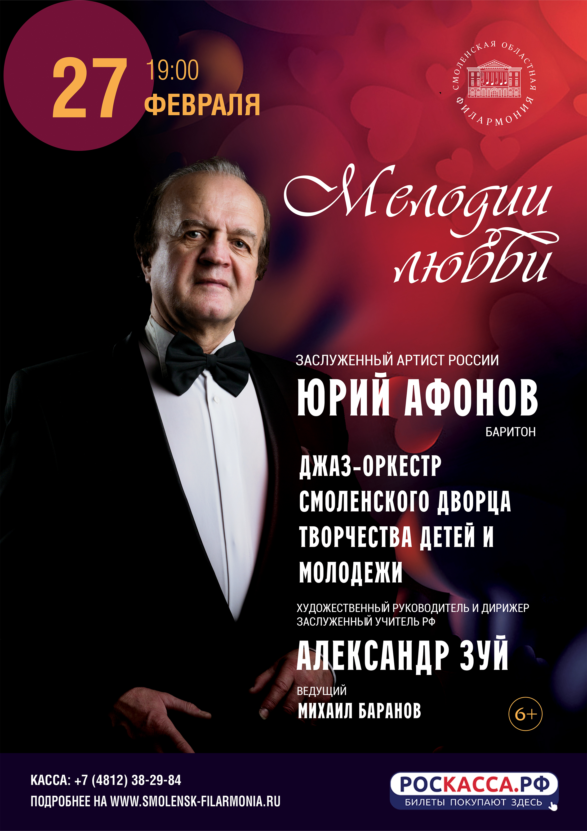 27 февраля в 19.00 в Концертом зале имени М.И. Глинки состоится концерт «Мелодии любви».