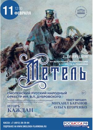 11 февраля в 12.00 в Смоленской областной филармонии прозвучат знаменитые музыкальные иллюстрации Георгия Свиридова к повести Александра Пушкина «Метель».
