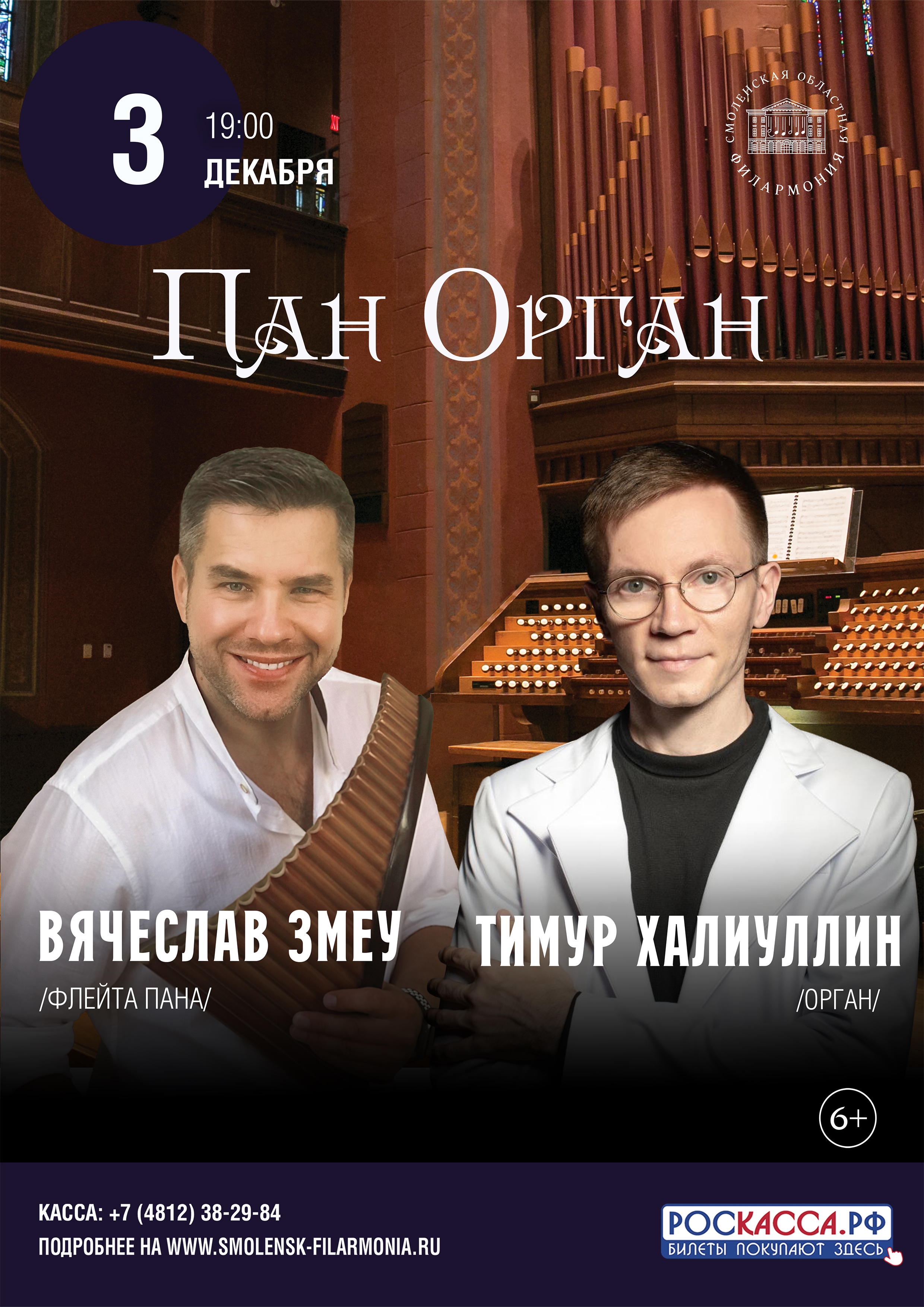 3 декабря на сцене Концертного зала имени М.И. Глинки Вячеслав Змеу (флейта Пана) и Тимур Халиуллин (орган) представят уникальную концертную программу «Пан Орган».