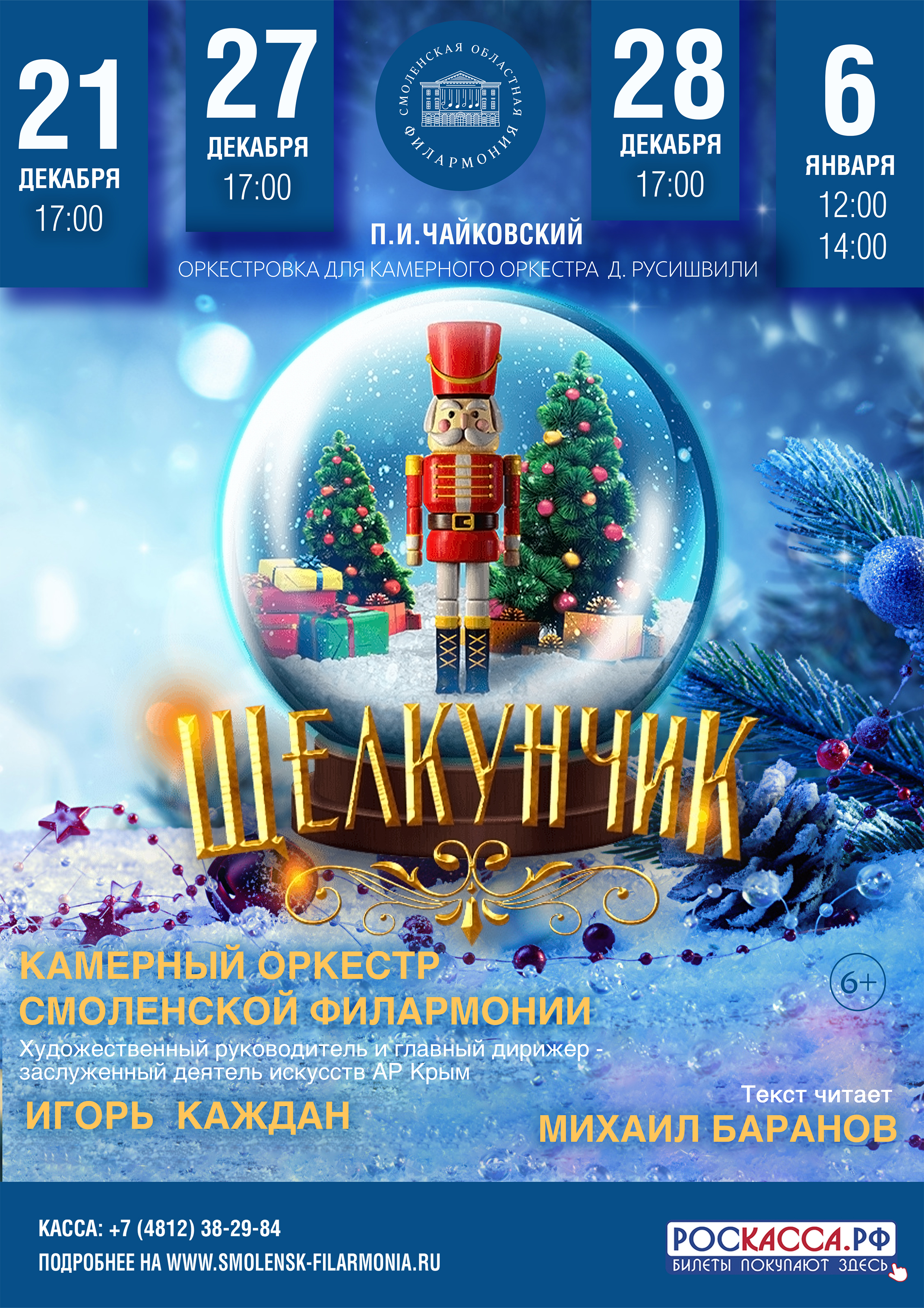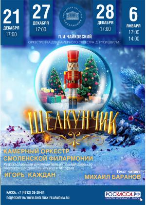 Вы погрузитесь в невероятный мир волшебства и детской фантазии. Сказку Эрнста Гофмана для вас прочитает мастер художественного слова Михаил Баранов. Музыку из балета Петра Чайковского в переложении Давида Русишвили для камерного оркестра исполнит Камерный оркестр Смоленской филармонии под управлением дирижера - заслуженного деятеля искусств АР Крым Игоря Каждана.