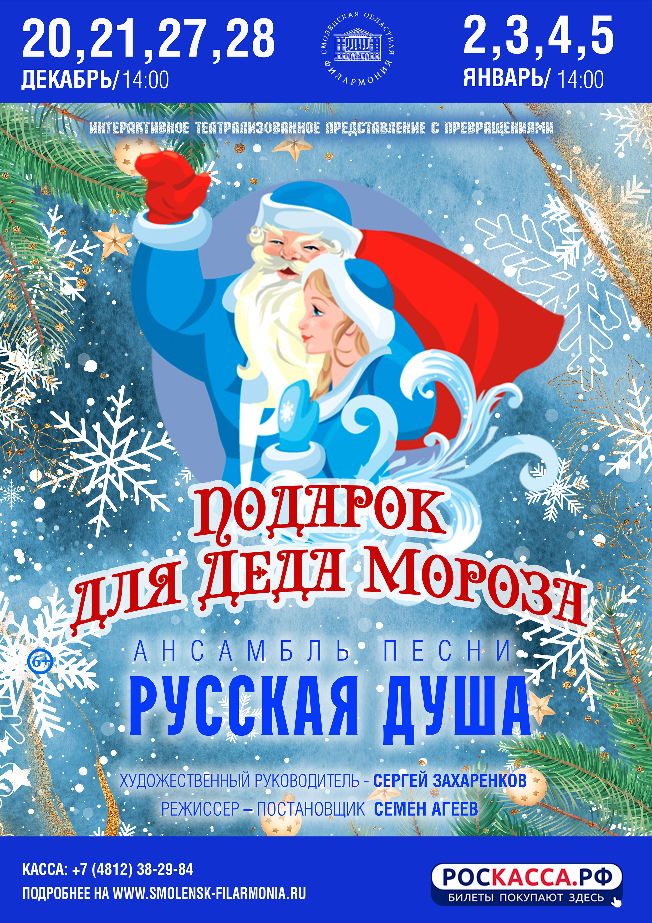 В Смоленской областной филармонии состоится новогоднее интерактивное театрализованное представление с превращениями «Подарок для Деда Мороза».