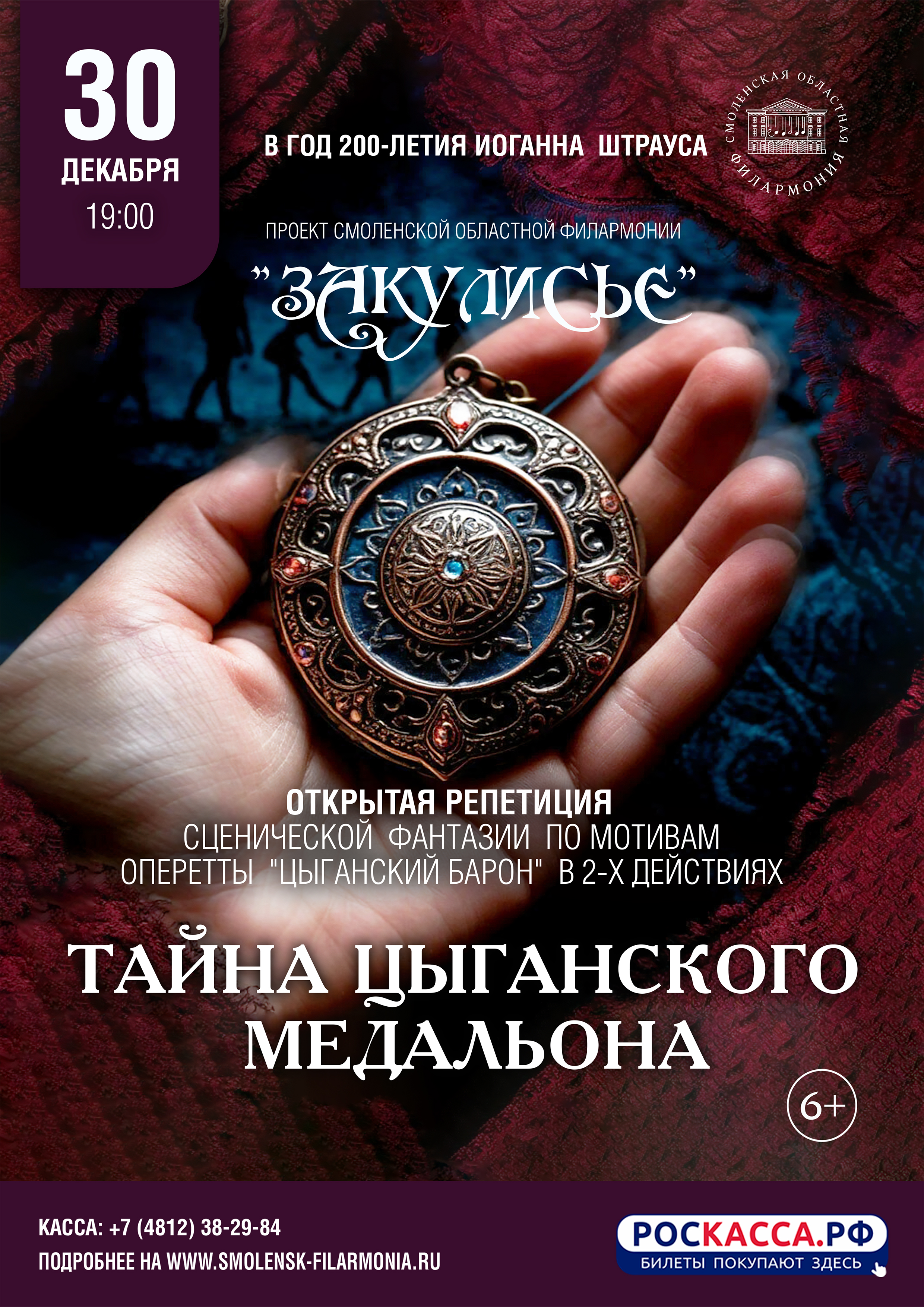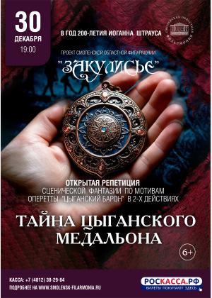 30 декабря в 19.00 часов Смоленская филармония приглашает на открытую генеральную репетицию новогоднего концерта «Тайна цыганского медальона» по мотивам оперетты Иоганна Штрауса «Цыганский барон»!