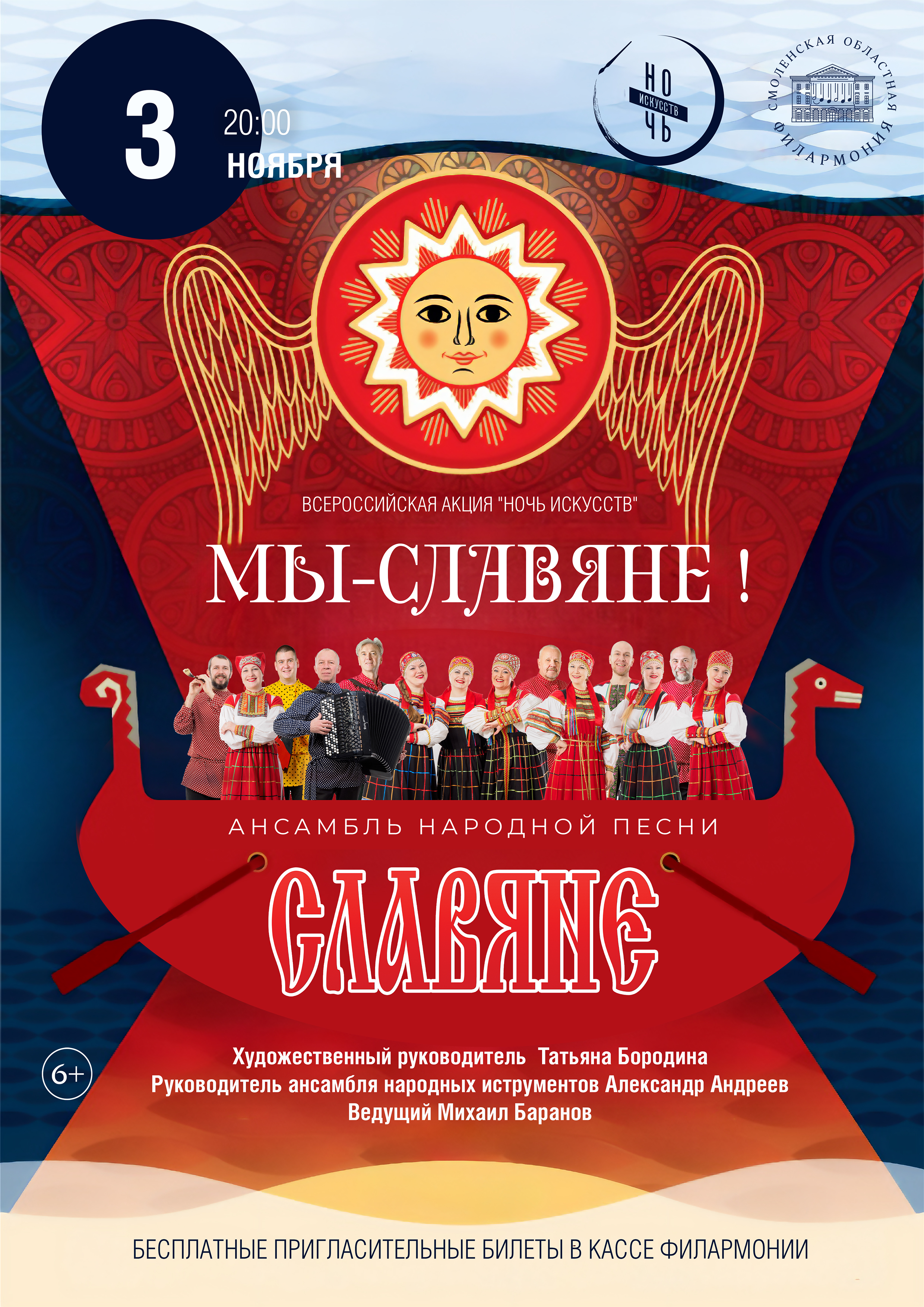 3 ноября Смоленская филармония приглашает всех ценителей прекрасного посетить уникальный праздничный концерт «Мы — славяне!», который состоится в рамках Всероссийской акции «Ночь искусств».